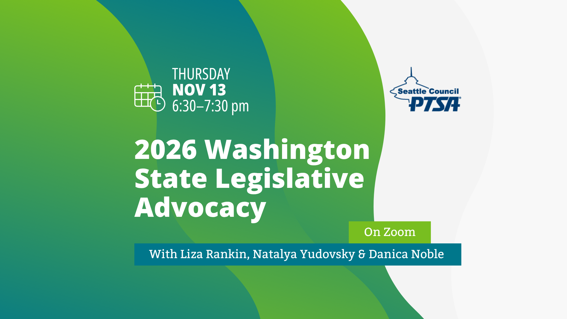 We are 60 days away from the 2026 Washington State Legislative Session! Join SCPTSA and our guest advocates to learn about how we organize and advocate during the legislative session and what support is available to PTA leaders.
