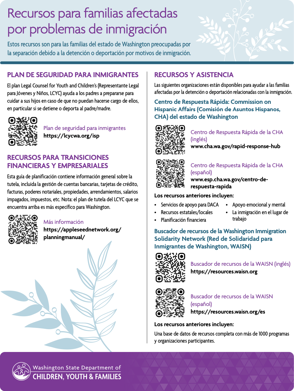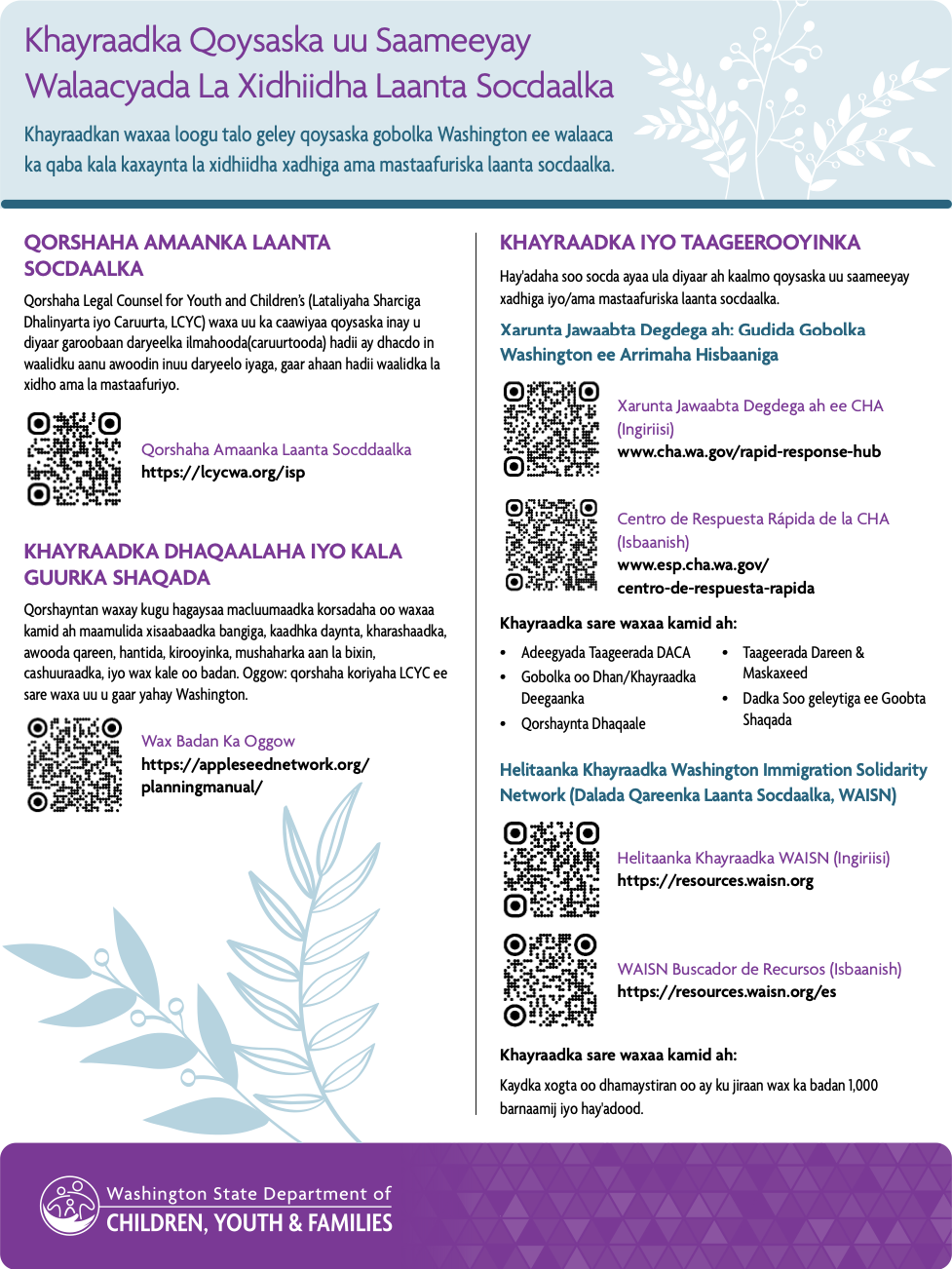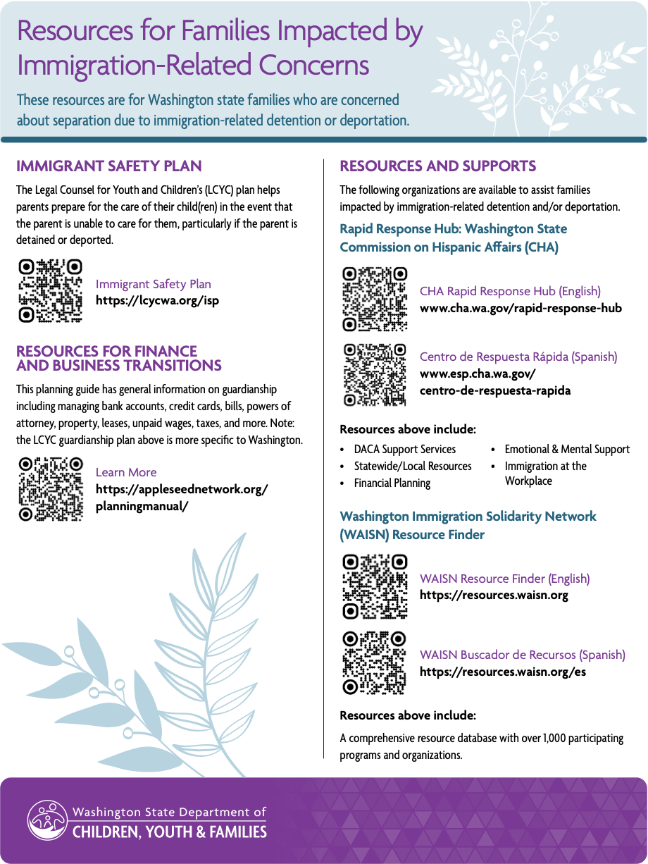 Washington State Department of Children, Youth & Families Downloadable Resource Fliers (multiple languages)